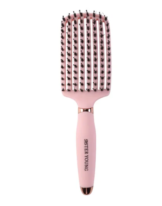 Masz dość ciągnięcia, plątania i łamliwości włosów podczas czesania? Szczotka do włosów OVIA to połączenie delikatnych nylonowych szpilek i naturalnego włosia dzika, które rozczesuje włosy bez bólu, wygładza je i nadaje im zdrowy połysk. Idealna do każdego rodzaju włosów – od cienkich po grube i kręcone.